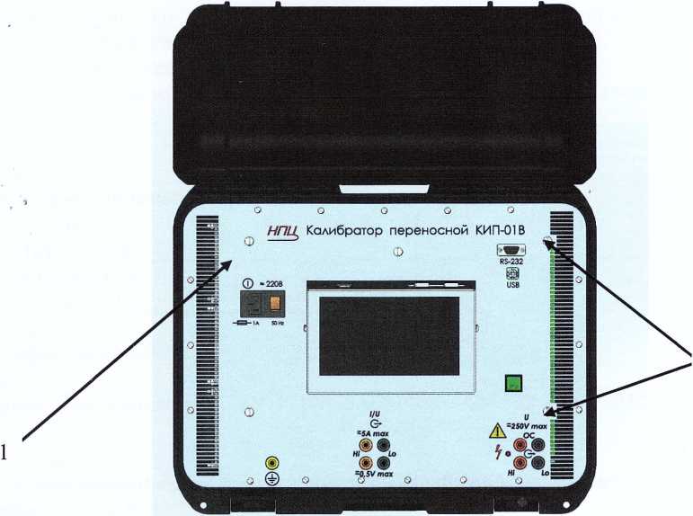 Внешний вид калибраторов КИП-01 В и КИП-01 В/1 с указанием мест пломбировки от несанкционированного доступа и нанесения знака утверждения типа приведены на рисунках 1 - 2.