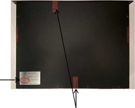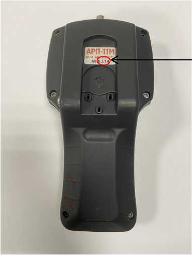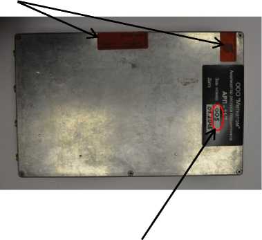 Рисунок 2 - Внешний вид измерителя амплитуд сигналов акустической эмиссии для диагностики и анализа ресурса редукторов и подшипников типа АРП-11/М с указанием места нанесения пломбы в виде стикера-наклейки и места нанесения заводского номера
