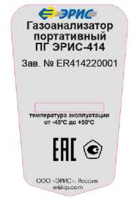 Рисунок 1 - Маркировочные таблички газоанализаторов портативных ПГ ЭРИС-411, ПГ ЭРИС-414 с указанием заводского номера и знака утверждения типа