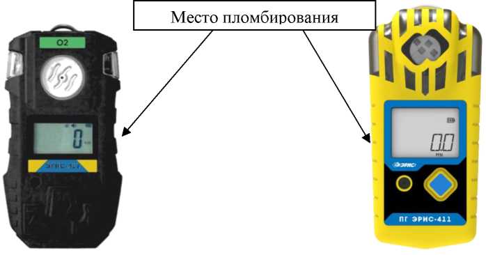 Рисунок 2 - Общий вид газоанализатора портативного ПГ ЭРИС-411-1 и схема пломбировки