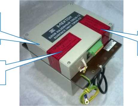 Для исключения возможности непреднамеренных и преднамеренных изменений измерительной информации и для предотвращения несанкционированного вскрытия, на стык корпуса и крышки ТМСН, в двух местах наклеивается скотч пломбировочный и знак поверки как показана на рисунке 3.