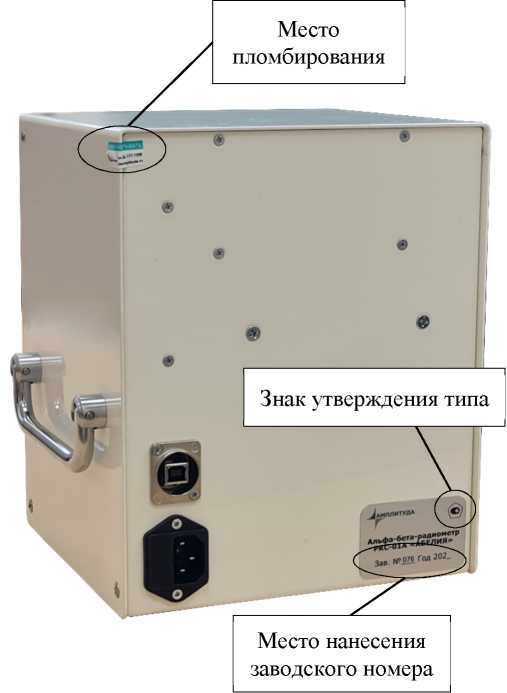 Общий вид радиометра с указанием мест для размещения знака утверждения типа, заводского номера и местами пломбировки представлен на рисунке 1.