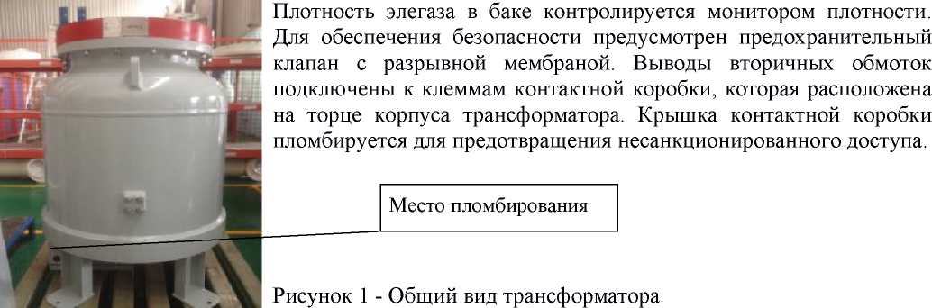 Трансформаторы напряжения типа JSQXFH-110 представляют собой масштабные преобразователи индуктивного типа, размещенные по три в баке, заполненном элегазом. Принцип действия основан на явлении взаимной индукции в обмотках, намотанных на один сердечник. Общий вид JSQXFH-110 показан на рис.1. Каждый трансформатор имеет первичную и до пяти вторичных обмоток, измерительных и/или защитных. Сердечники вторичных обмоток, в виде замкнутых квадратов, набранные из листов электротехнической стали, имеют низкие потери. Характеристики каждого трансформатора проверяются. Бак трансформатора напряжения, куда помещена активная часть, изготовлен из алюминия.