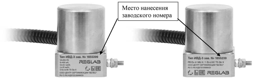 Внешний вид датчика вибрации ИВД-3 и место нанесения заводского номера приведены на рисунке 1.