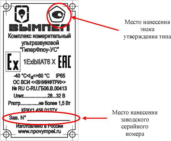 наносится на планку, закрепленную на блоке электронном, методом диффузионной фотохимии и в верхний правый угол титульного листа руководства по эксплуатации типографским способом.