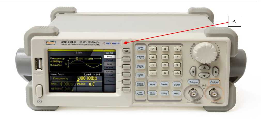 На передней панели генераторов находится цветной жидкокристаллический дисплей, на котором отображается форма генерируемого сигнала и его параметры. Управление режимами работы, выбор регулируемых параметров, включение и отключение выходов генераторов осуществляется с передней панели специальными кнопками. Для ввода цифровых параметров на панели имеется три группы органов управления: кнопки направлений (со стрелками), вращающийся регулятор параметров и цифровая клавиатура. В нижней правой части панели расположены выходные разъемы: для серии АКИП-3408 - основного канала и канала синхронизации; для серии АКИП-3418 - основных двух каналов.
