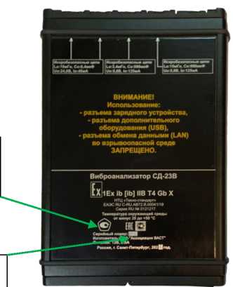 Безопасность для работы во взрывоопасных средах (только для виброанализатора в исполнении СД-23В) |