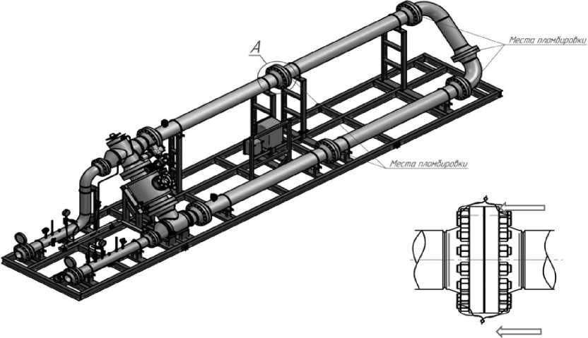 Рисунок 2 - Места пломбировки фланцевых соединений калиброванного участка установок поверочных трубопоршневых ТПУ ИНКОМСИСТЕМ