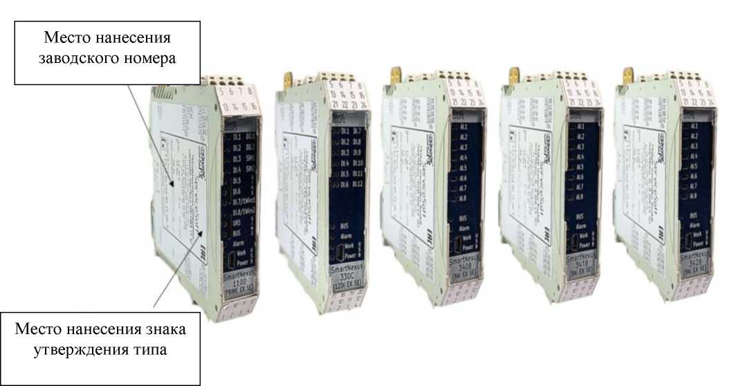 Рисунок 1 - Общий вид контроллеров с указанием места нанесения знака утверждения типа, места нанесения заводского номера