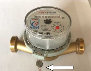 Пломбирование счетчиков холодной и горячей воды универсальных ЭКО НОМ СВ-15 осуществляется нанесением знака поверки давлением на свинцовую (пластмассовую) пломбу. Пломба навешивается на внешнюю боковую сторону счетчика посредством проволоки, проведенной сквозь пластмассовое кольцо, соединяющее измерительную камеру и счетный механизм. Место пломбировки счетчиков и горячей воды универсальных ЭКО НОМ СВ-15 представлено на рисунке 2.