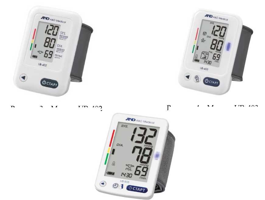 Приборы для измерения артериального давления и частоты пульса цифровые серии UB модели: UB-201, UB-202, UB-402, UB-403, UB-505