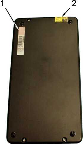 Рисунок 1 - Общий вид и схема пломбировки мультиметров 1 - место нанесения поверительного клейма в виде наклейки; 2 - место нанесения заводской пломбы.