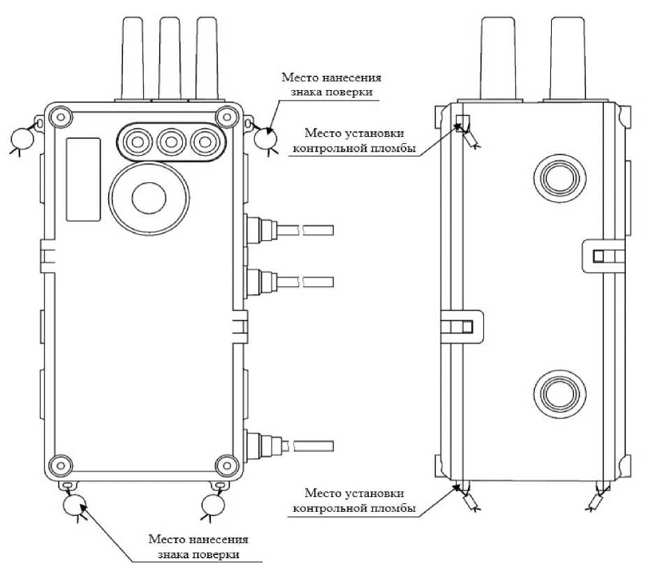 Схемы пломбировки от несанкционированного доступа, обозначение мест нанесения знака поверки представлены на рисунках 4 - 6.