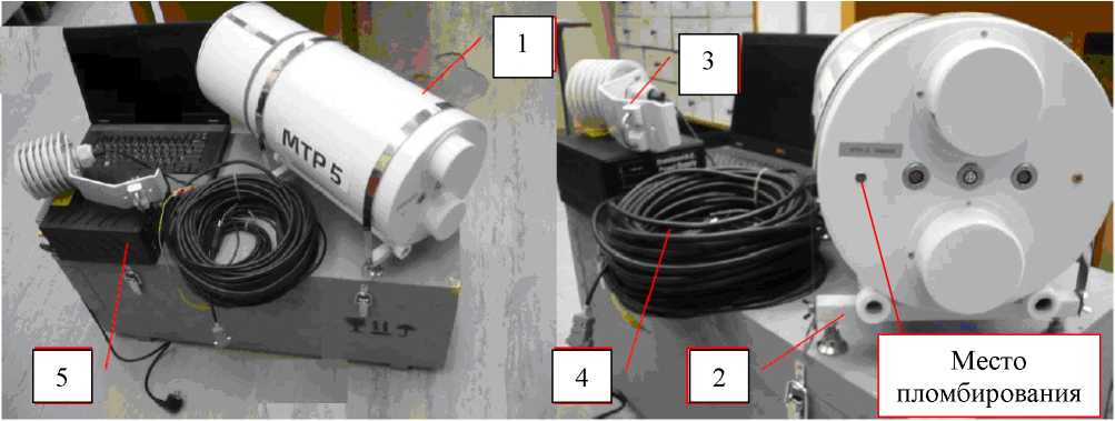 Профилемер МТР-5 состоит из измерительного блока, датчика внешней температуры с метеозащитой, блока питания и основания для установки прибора (установочной платформы).