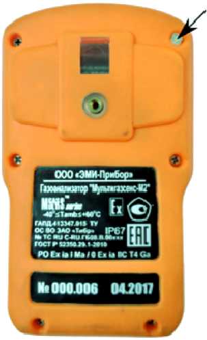На задней панели корпуса расположены: крепление для ремешка или на ремень типа полукольцо с застежкой «крокодил», табличка с данными о приборе, табличка с серийным номером прибора.