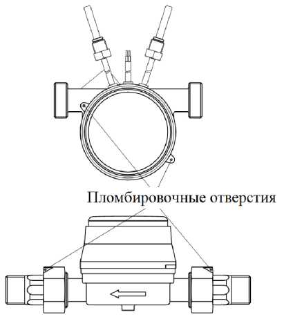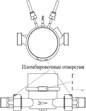 Р и су н о к 3 - Схема пломбировки от несанкционированного доступа счетчиков тепла Гефест 15.A1.I, Гефест 15.A1.R, Гефест 15.A1.M, Гефест 15.A1.F