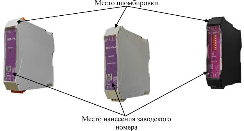 Заводской номер, состоящий из арабских цифр, наносится на наклейку в передней панели корпуса преобразователей типографским способом. Пломбировка преобразователей осуществляется с помощью разрывной наклейки изготовителя. Схема пломбировки преобразователей от несанкционированного доступа представлена на рисунке 4.