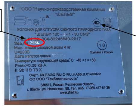 Знак поверки наносится на пломбы, устанавливаемые на расходомер массовый TSERUS и ЭЦБ «Шельф». Схемы пломбирования и мест нанесения знака поверки представлены на рисунках 2, 3. Заводской номер в виде цифрового обозначения, состоящего из арабских цифр наносится фотографическим способом, как показано на рисунке 4, на металлическую табличку, прикрепляемую к корпусу колонки заклёпками.