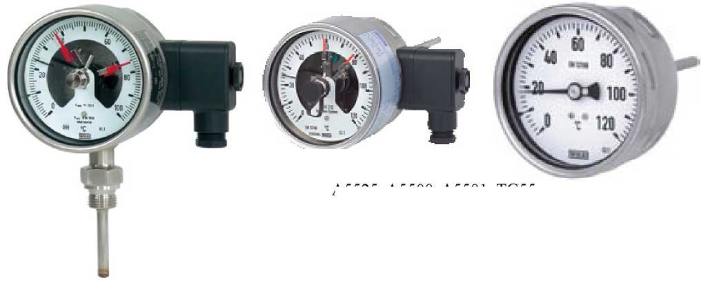 Корпуса термометров серий 54, 55 могут заполняться демпфирующей жидкостью устойчивости к вибрациям и низкой температуре. Термометры серий 55, TG55 могут оснащаться встроенными сигнализирующими устройствами, применяемыми для размыкания (замыкания) электрических сигнальных цепей при достижении установленных значений температуры.