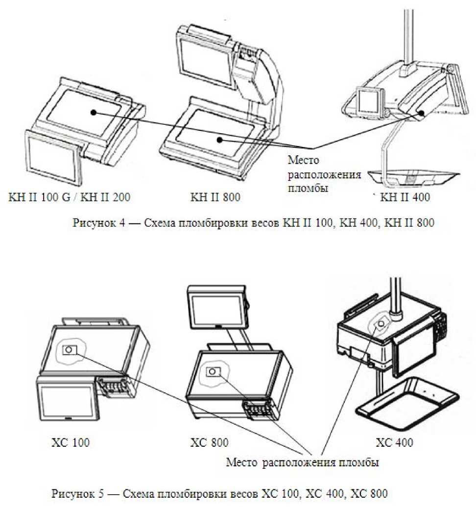 Схема пломоировки весов ХС 100; ХС 400: ХС 800