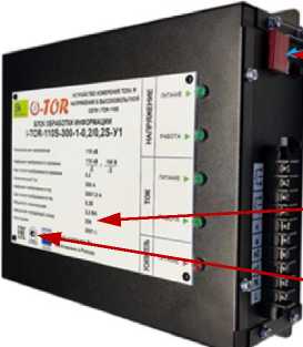 Рисунок 3 - Общий вид блока обработки информации устройства измерения тока и напряжения в высоковольтной сети I-TOR-110S с указанием мест пломбировки, мест нанесения заводского номера и знака утверждения типа