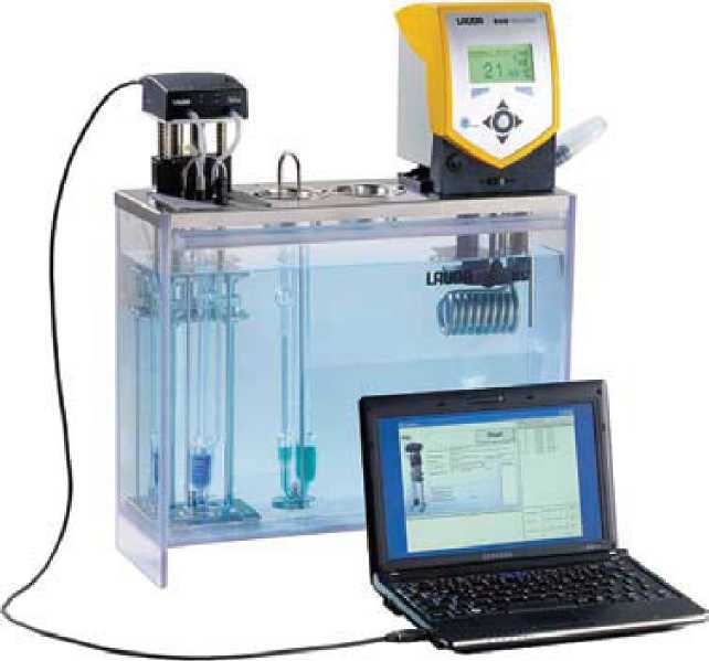 Модель термостатируемой бани и циркуляционного криостата выбирается в зависимости от предполагаемого рабочего диапазона температуры, количества измерительных штативов и имеет внешний блок управления для установки, поддержания температуры. Могут быть дополнены магнитными мешалками с отдельным блоком управления.