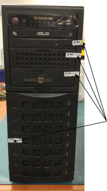 Рисунок 3 - Внешний вид сервера SecurOS-IVS-NVR-AUTO-PRO-6 комплекса в варианте исполнения «ЦОД» с местами пломбирования сервера