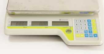 - терминал встроен в корпус весов, дисплеи с индикацией массы, цены и стоимости, дисплеи для покупателя крепятся к корпусу весов посредством стойки, клавиатура 25-ти кнопочная (индекс ДП6.3);