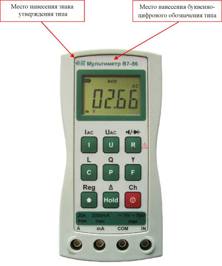 Общий вид мультиметра с указанием мест нанесения знака утверждения типа и буквенно-цифрового обозначения типа представлен на рисунке 1.