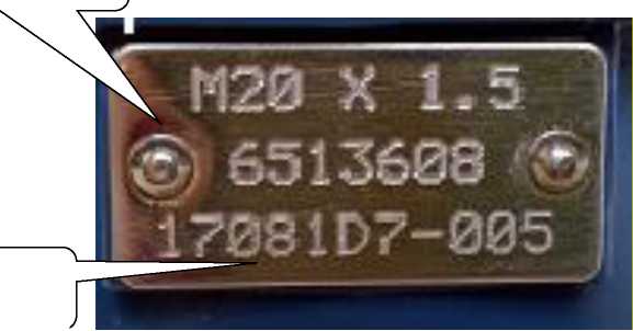 Заводской номер датчиков в виде буквенно-цифрового обозначения, состоящего из арабских цифр и букв латинского алфавита, наносится ударным способом или методом гравировки на металлическую табличку, расположенную на верхней части корпуса. Общий вид таблички с указанием заводского номера представлен на рисунке 3.