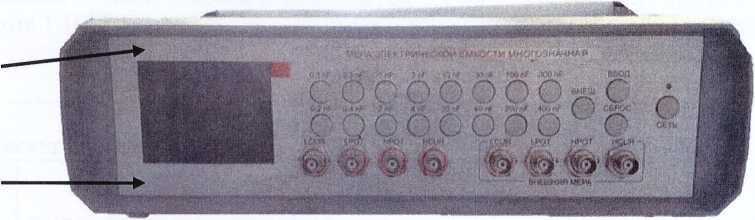Конструктивно мера выполнена в отдельном корпусе. На передней панели расположены 4 разъема для подключения измерителя емкости и 4 разъема для подключения внешней меры емкости.