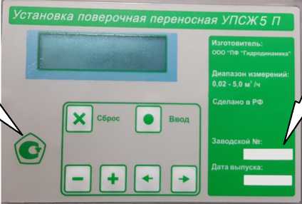 Заводской номер установок поверочных переносных УПСЖ 5П наносится на маркировочную табличку, закрепленную на лицевой части измерительно-вычислительного блока перманентным маркером. Обозначение места нанесения знака утверждения типа и заводского номера представлено на рисунке 3.