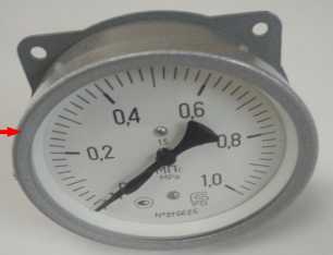 Рисунок 8 - Общий вид манометров модификации МПс ОШ (с электрической подсветкой циферблата диаметр корпуса 100 мм)