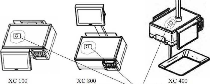 - XC 400: в одном (основном) корпусе объединены электронное устройство, печатающее устройство, сенсорный дисплей, дополнительный дисплей (при наличии), ГПУ подвешено снизу корпуса;