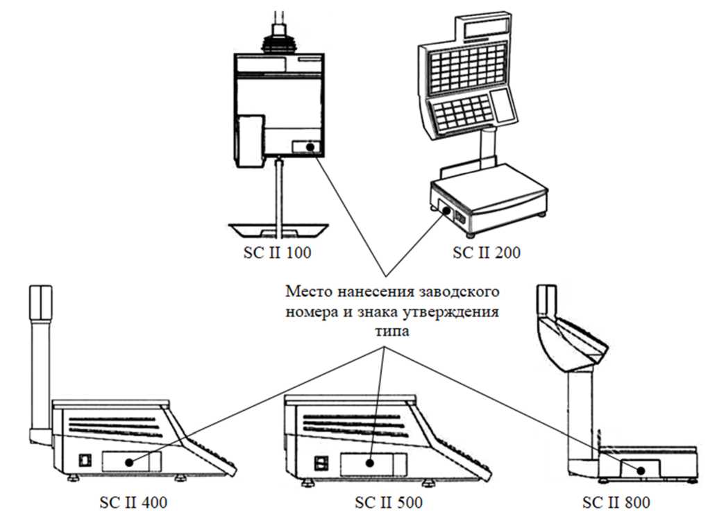 Рисунок 8 - Место нанесения заводского номера и знака утверждения типа весов исполнений SC II 100, SC II 200, SC II 400, SC II 500, SC II 800