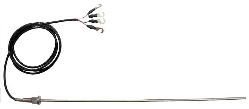 К выводам чувствительного элемента приварены отрезки проводников, электрически изолированные друг от друга и корпуса. Корпус защитной арматуры выполнен в виде металлической трубки, изготовленной из нержавеющей стали.