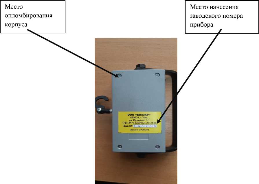 Заводской номер вписывается несмываемыми чернилами в специально отведённые поля в табличке, которая вклеивается на обратную сторону прибора. В табличку типографским способом вносятся наименование изготовителя, почтовый адрес и телефон.
