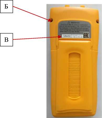 Рисунок 1 - Общий вид калибраторов моделей АКИП-7302, АКИП-7303, АКИП-7304, схема нанесения знака утверждения типа (А) и схема пломбировки от несанкционированного доступа (без защитного чехла) (Б), место нанесения серийного номера (В)
