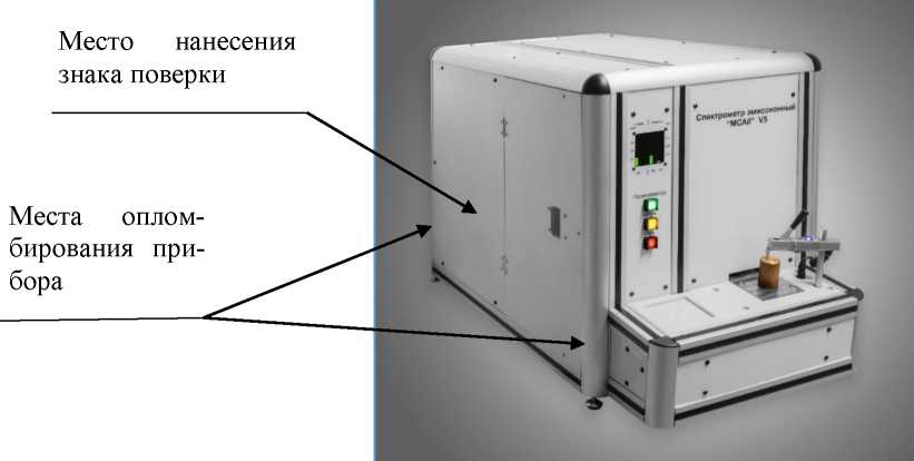 наносится на титульный лист руководства по эксплуатации методом компьютерной графики и на переднюю или боковую панель корпуса спектрометра в виде специальной таблички.