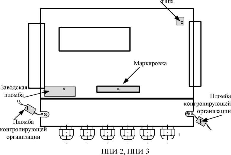 Рисунок 5 - Места размещения пломб, надписей и наклеек на ППИ