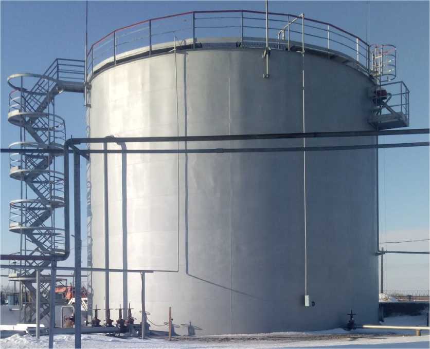 Конструктивно резервуары представляют собой надземные вертикальные стальные сосуды цилиндрической формы с плоским днищем и крышей.