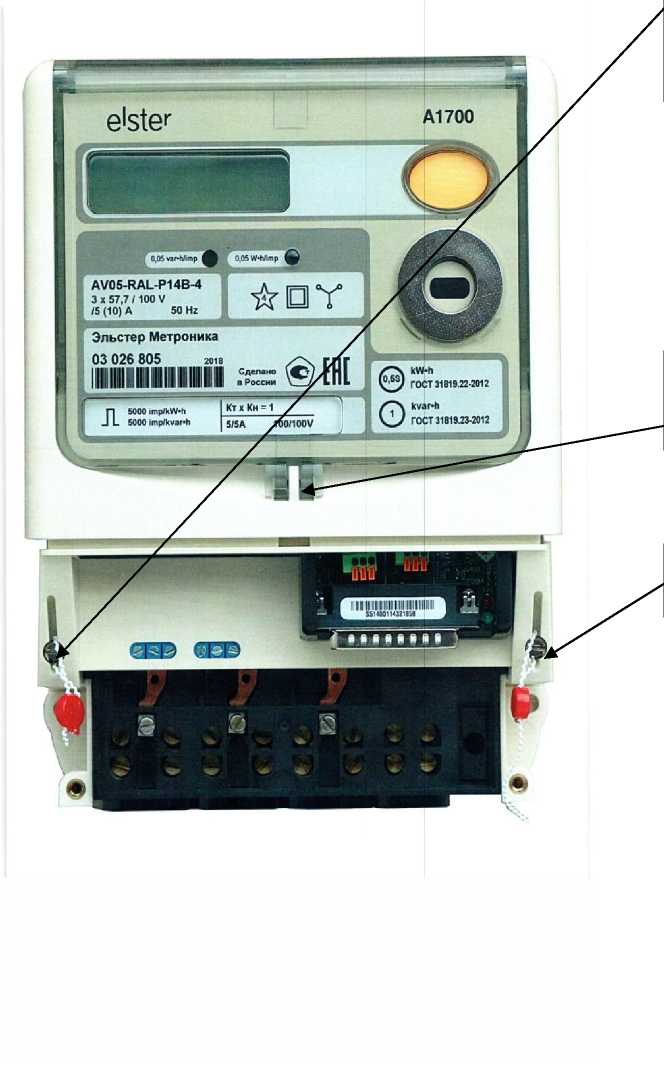 Доступ к кнопке “RESET” (сброс максимальной мощности) блокируется установкой на крышку счетчика пломбы энергоснабжающей организации. На лицевой стороне кожуха закреплена также металлическая пластина оптического порта.