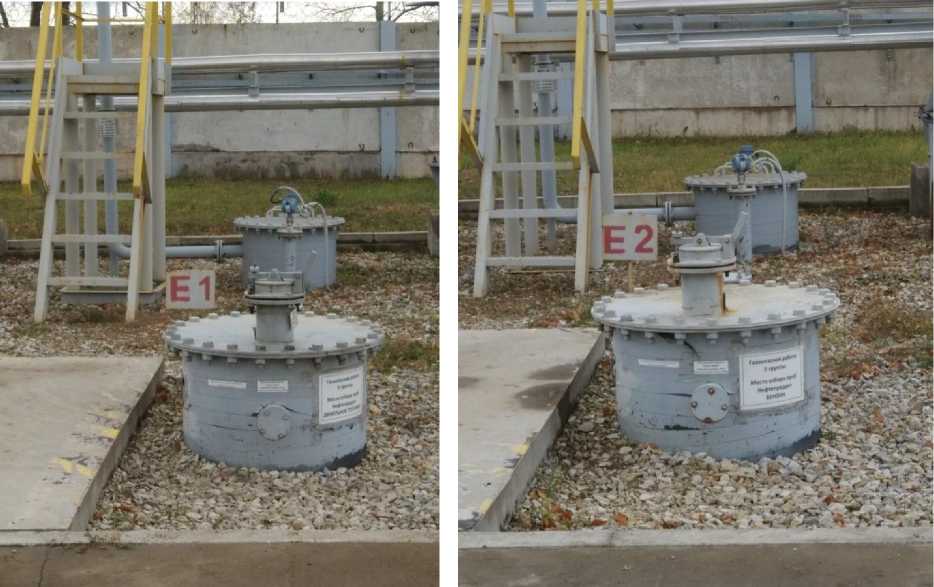 Рисунок 1 - Общий вид видимых частей конструкции резервуаров РГС-40 № Еп-1 (слева), № Еп-2 (справа)