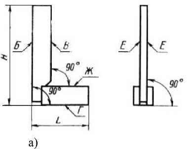 Таблица 2 - Допуск перпендикулярности измерительных поверхностей Б и В к опорным поверхностям Г и Ж на длине H (для УЛ - на длине H и L)
