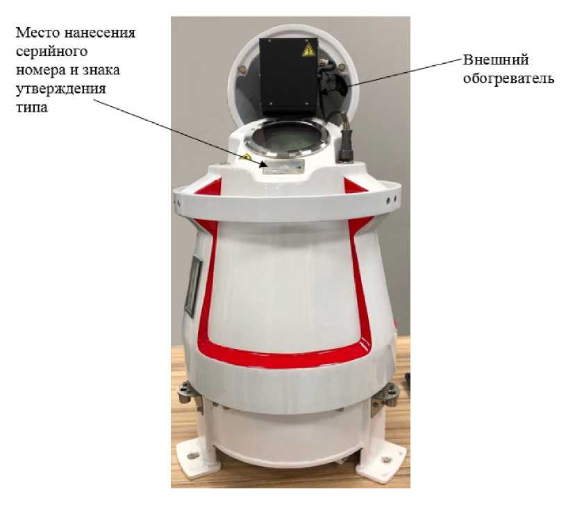 Рисунок 1 - Общий вид приборов SKYDEX-15 (на подставке) с указанием составных частей, а также с указанием мест нанесения серийного номера и знака утверждения типа