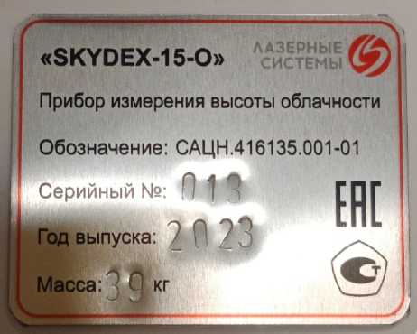 Технические условия САЦН.416135.001ТУ «Приборы измерения высоты облачности SKYDEX-15. Технические условия».