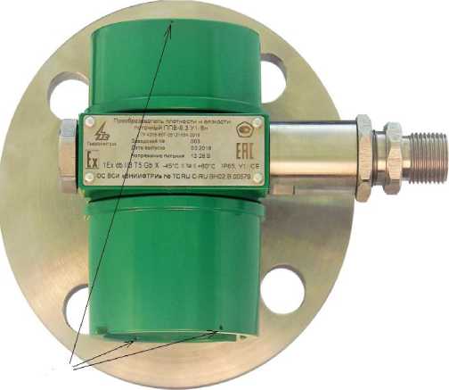 Внутренние части чувствительного элемента защищены металлическим корпусом и не контактируют с измеряемой средой. Корпус чувствительного элемента соединён с металлическим фланцем (исполнение «Ф») или специальным конусом с накидной гайкой (исполнение «К») для монтажа чувствительного элемента в трубопровод. Электронные элементы расположены в алюминиевом корпусе с кабельными вводами для подключения внешних электрических цепей.