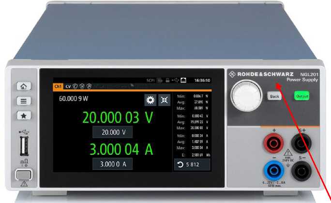 На передней панели источников расположены: кнопка включения питания, цветной жидкокристаллический сенсорный дисплей, функциональные клавиши, поворотный регулятор, USB разъем, разъемы выходных каналов: один канал с компенсацией для модели NGL201 и два канала для модели NGL202.