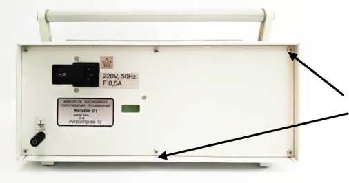Пломбирование от несанкционированного вмешательства предусмотрено в правом верхнем углу на задней панели измерителя, внизу в центре на нижней панели и на передней панели с правой стороны под декоративной планкой. Пломбирование осуществляется вдавливанием мастики в специальную чашечку, установленную под винт в правом верхнем углу на задней панели и внизу в центре на нижней панели корпуса измерителя. Пломбирование осуществляется на правой стороне передней панели наклеиванием бумажной пломбы в стык между шильдом и корпусом измерителя под декоративную планку.