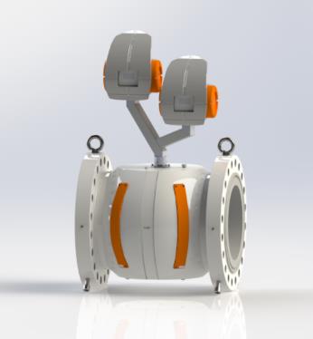 - измерительный корпус с установленными в нем ультразвуковыми приемопередатчиками. В счетчике может быть установлено от одной до восьми пар ультразвуковых приемопередатчиков, которые передают сигнал без отражения от внутренней стенки измерительного корпуса. Пары приемопередатчиков располагаются в одной плоскости параллельно друг другу или в двух пересекающихся плоскостях.
